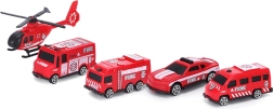 Štiri različna gasilska vozila, helikopter in figurica gasilca omogočajo otrokom ustvarjati napete reševalne misije ter razvijati domišljijo.