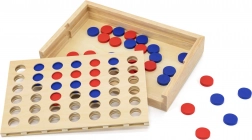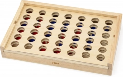 Priljubljena igra 4 v vrsto v kakovostni leseni izvedbi prinaša brezčasno zabavo, ki navdušuje generacije. Postavite se nasproti tekmecu in prvi sestavite štiri žetone v eno vrsto. Zaradi trpežnega materiala in čistega dizajna je igra obstojna, estetska in odlična za vsak dom.