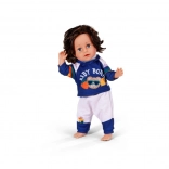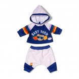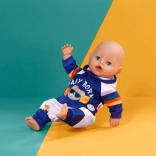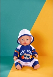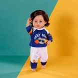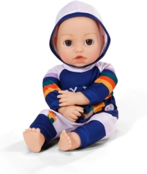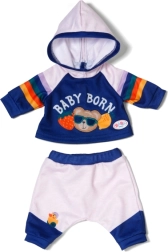 Stajliš trenirka za punčke velikosti 43 cm doda igri nov razsežnosti. Set vsebuje kapucar in hlače v modro‑beli kombinaciji z igrivimi mavričnimi črtami in potiskom BABY BORN. Oblačilo se zlahka obleče in sleče, idealno je za igro vlog, razvoj fine motorike in spodbudo domišljije otrok od 3 let dalje.