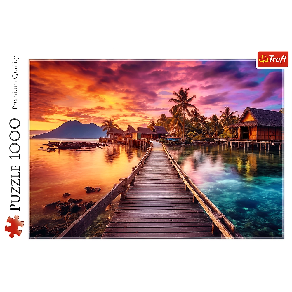 Odkrijte sprostitev ob sestavljanju sestavljanke TREFL z motivom rajskega otoka in eksotičnega sončnega zahoda. Komplet vsebuje 1000 kosov, ki po sestavi ustvarijo podrobno sliko velikosti 68,3 × 48 cm – idealno za uokvirjanje in dekoracijo notranjih prostorov.