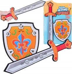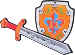 Zabaven in varen viteški set za otroke – penasti ščit z lilijinim grbom in prožen meč iz EVA. Mehak material zagotavlja varno igro brez tveganja za poškodbe, spodbuja ustvarjalnost in odlično dopolni viteški kostum.