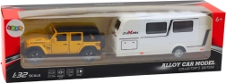 Ta podrobno izdelan komplet združuje robusten terenski avto in sodobno kamping prikolico. Kovinska karoserija s plastičnimi dodatki zagotavlja vzdržljivost, medtem ko realistična razmerja v merilu 1:32 navdušijo tako mlade voznike kot odrasle zbiratelje.