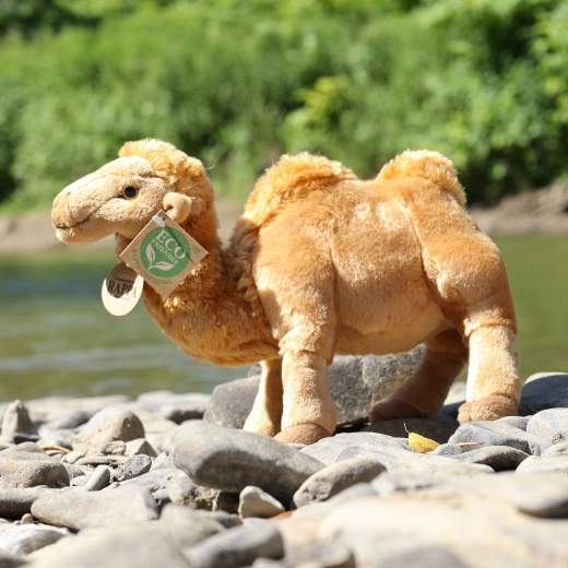 Ta plišasti kamel izstopa z nežnim, na dotik prijetnim materialom in podrobnim izdelovanjem, zaradi katerega deluje skoraj kot živ. Zahvaljujoč varnemu polnilu iz recikliranih PET plastenk je igračka prijazna do narave in primerna izbira tudi za najmlajše.