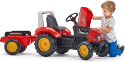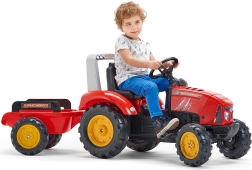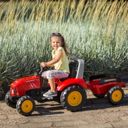 Traktor je izdelan iz visokokakovostne plastike in je namenjen otrokom od 3 let dalje. Je enostaven za upravljanje, razvija grobo motoriko in spodbuja domišljijo pri kmečkih igrah. Odpirajoč se pokrov z imitacijo motorja poskrbi za večjo pristnost igre, medtem ko troblja na volanu povečuje varnost in zabavo.