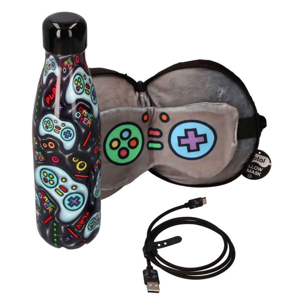 Stilska termovka z gamerskim motivom in napisi, kot je Game Over, bo navdušila vsakega igralca. Zahvaljujoč prostornini 500 ml, višini 26 cm in kompaktnemu premeru 7 cm je idealna za na pot, v šolo in v pisarno.