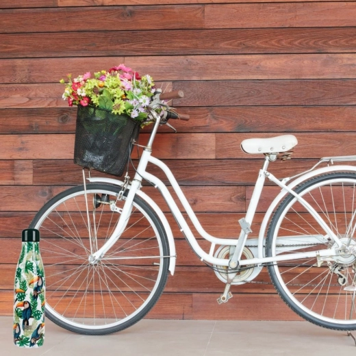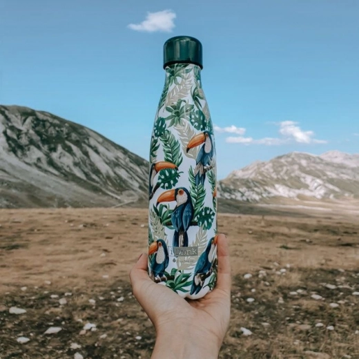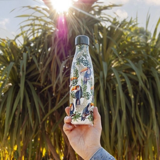 Stajliš nerjaveča termovka z motivom eksotičnih tukanov ohranja vaše pijače dlje v idealni temperaturi. Ima enostavno čistljivo zasnovo, praktičen volumen 500 ml in kompaktne mere za vsakodnevno nošenje v službo, šolo in na izlete.