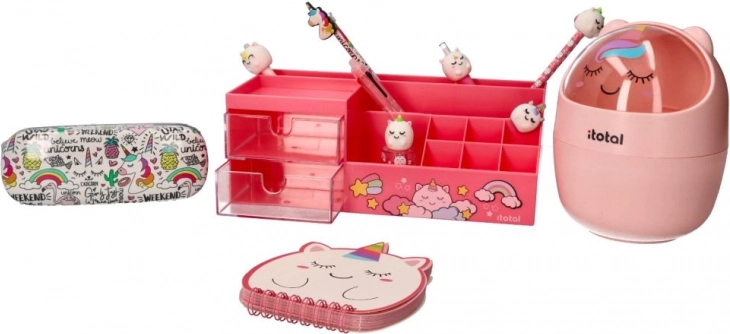 Prisrčen namizni organizator z motivom samoroga. Ohranite svinčnike in malenkosti pregledno in z nasmehom. Idealno za otroke, študente in domačo pisarno.