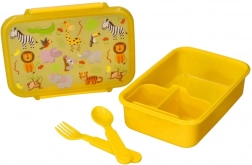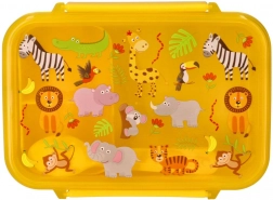 Vesela rumena posodica z motivi leva, zebre, žirafe in opice polepša vsak otroški prigrizek. Kompaktne mere 18 × 13 × 6 cm se zlahka prilegajo šolski torbi, hkrati pa ponujajo dovolj prostora za sendvič, sadje in drobne prigrizke. Zaradi kakovostnega materiala brez BPA je škatla varna za vsakodnevno uporabo.
