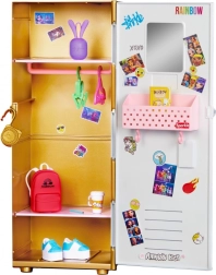 Odkrij ikonično omarico RAINBOW HIGH Style Locker, navdihnjeno s serijo. Odlična je za shranjevanje oblačil in dodatkov, hkrati pa spodbuja ustvarjalno igro in organizacijo. Zaradi premišljene notranje razporeditve bodo otroci preprosto ohranjali red.