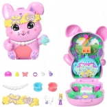 Set Polly Pocket Zajčkov Čajni Set je v obliki ljubkega zajčka, ki ga lahko okrasite z dodatki. Po odprtju razkriva vrtiček, idealen za popoldanski čajni čas! Očarale vas bodo aktivnosti, kot so vožnja v skodelicah, odkrivanje presenečenj za čajnimi vrati in gugalnica.
