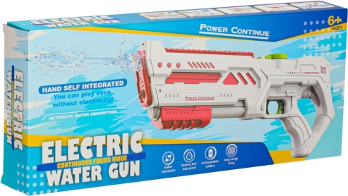 Ta moderna vodna pištola v beli barvi z zelenimi in rdečimi poudarki prinaša priljubljeno zabavo v novi preobleki. Zahvaljujoč samodejnemu sprožilcu in polnjenju prek USB jo otroci upravljajo intuitivno in brez napora. Ergonomska zasnova in nizka teža zagotavljata udoben oprijem tudi pri daljši igri.