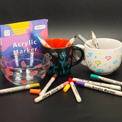Vodoodporni akrilni markerji za tekstil in kamne DIY so odlična izbira za vse, ki radi ustvarjajo na različnih površinah. Set vsebuje 12 markerjev v različnih barvah, primernih za slikanje na tekstil, kamne in druge materiale.