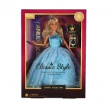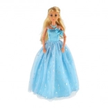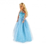 Punčka ima dolgo modro obleko z nežnim vzorcem in bleščečimi detajli, ki očarajo na prvi pogled.