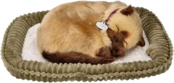 Ta realistična plišasta mačka posnema speče siamsko mucko in z nežnim “dihanjem” deluje izjemno pomirjujoče. Mehko ležišče kar vabi k razstavljanju na polici, nočni omarici ali v otroškem kotičku.