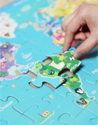 Potopite se v očarljivi svet geografije s temi barvitimi puzzli. Puzzle otrokom pomagajo odkrivati celine, oceane in raznolikost našega planeta na način, ki je ne le zanimiv, temveč tudi interaktiven.