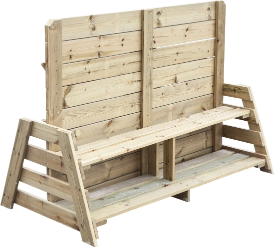 Impregniran borov les in robustna izdelava zagotavljata stabilnost, dolgo življenjsko dobo in varnost pri vsakodnevni uporabi na vrtu ali igrišču.