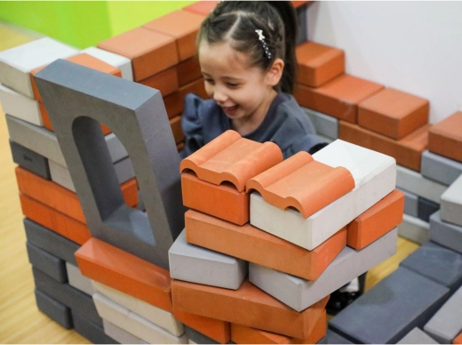 Pena EVA je prijazna do otroških rok in hkrati odporna na uporabo na prostem. Otroci lahko gradijo velike konstrukcije brez tveganja trdih udarcev.