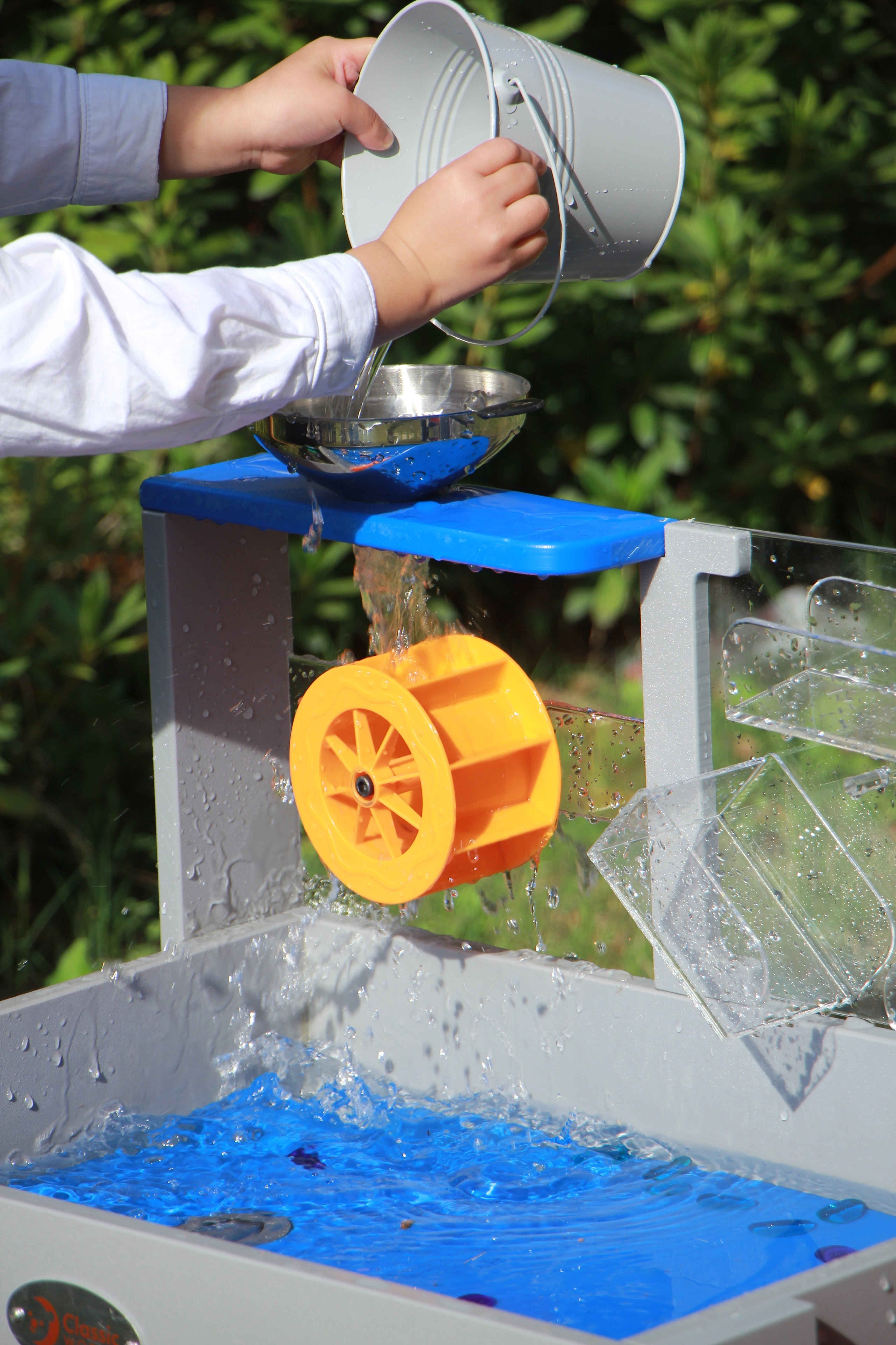 Izdelana v najvišji kakovosti omogoča, da se otroci v vročih dneh igrajo z vodo ali v hladnejših obdobjih s peskom. Otroci lahko eksperimentirajo z vodo, se učijo o njenem toku in delovanju črpalk, kar razvija njihove spretnosti in samozavest.