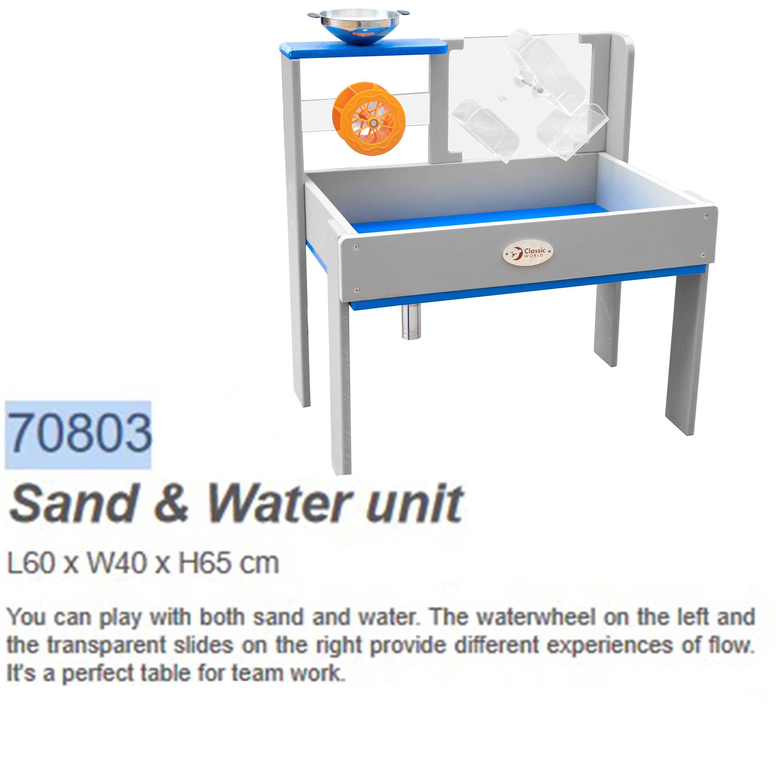 Miza za vodo in pesek Classic World prinaša zabavo z vodo in peskom za vse otroke. Ta inovativen in varen izdelek je idealen za uporabo na vrtu, na otroških igriščih ali v izobraževalnih ustanovah.