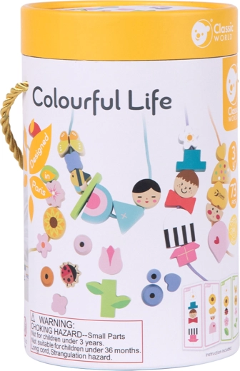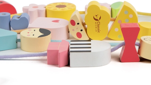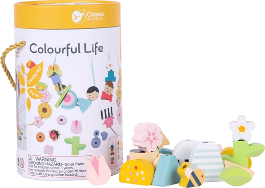 Podprite spretnost in domišljijo otrok z leseno nizanko CLASSIC WORLD. V pakiranju najdete pisane perle in oblike – cvetlice, živalice in like – ki jih otroci nizajo na vrvice ter se tako učijo koordinacije roka-oko, prepoznavanja barv in oblik ter logičnega sestavljanja oblačil za fanta in deklico.