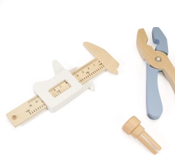 V kompletu so kladivce, izvijač, ključ, žagica, klešče in delujoči merili – idealno za urjenje fine motorike in koordinacije.