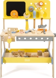 Odkrijte ustvarjalni svet popravil in gradnje z leseno delavnico CLASSIC WORLD. Ta kakovosten set vsebuje 27 delov, vključno z orodjem in dodatki, ter ponuja tudi kredo tablo za risanje načrtov. Zaradi čvrste lesene konstrukcije brez ostrih robov je varen za otroke in spodbuja fino motoriko, kreativnost in domišljijo.