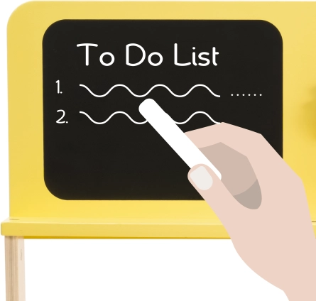 Otroci lahko narišejo projekte, seznam opravil ali okrasijo delavnico z risbicami – tabla se enostavno piše in briše.