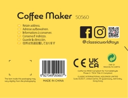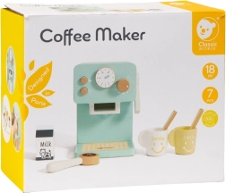 Komplet vsebuje vse, kar otroci potrebujejo za postrežbo »kave«: kavni aparat, 2 skodelici, 2 žlički, »mleko« in tlačilo/merico za kavo. Igra spodbuja fino motoriko, koordinacijo oko–roka ter družbeno interakcijo.
