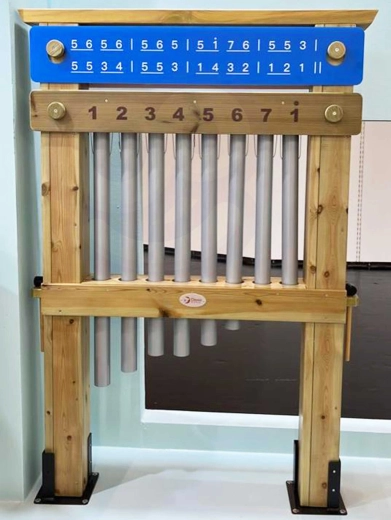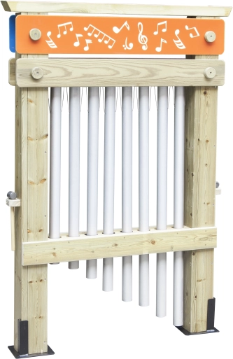 Vzdržljiv les in kovinske cevi zagotavljajo odličen zvok in dolgo življenjsko dobo tudi pri celoletni zunanji uporabi.