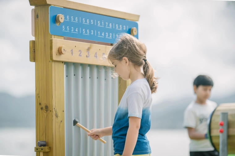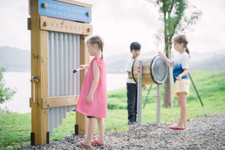 Veliki zunanji zvončki CLASSIC WORLD iz serije EDU spremenijo vrt ali igrišče v glasbeni kotiček. Otroci s priloženimi tolkači predramijo kovinske cevi in tako zlahka ustvarjajo harmonijo in ritem. Vgrajena plošča z notnimi znaki in primeri skladb je praktičen vodnik, ki podpira učenje skozi igro in motivira k samostojnemu glasbenemu raziskovanju.