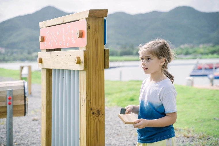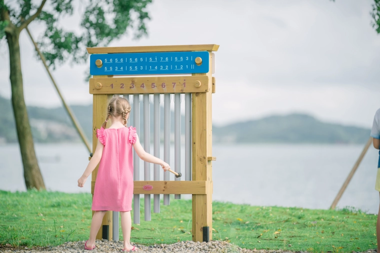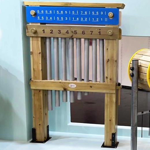 Konstrukcija je izdelana iz kakovostnega, gladko obdelanega lesa in vzdržljivih kovinskih elementov, ki prenesejo celoletno uporabo na prostem. Igranje na zvončke razvija slušno zaznavanje, motoriko, koordinacijo oko–roka ter sodelovanje med otroki. Primerno za vrtce, šolska dvorišča, skupnostna igrišča in zasebne vrtove.