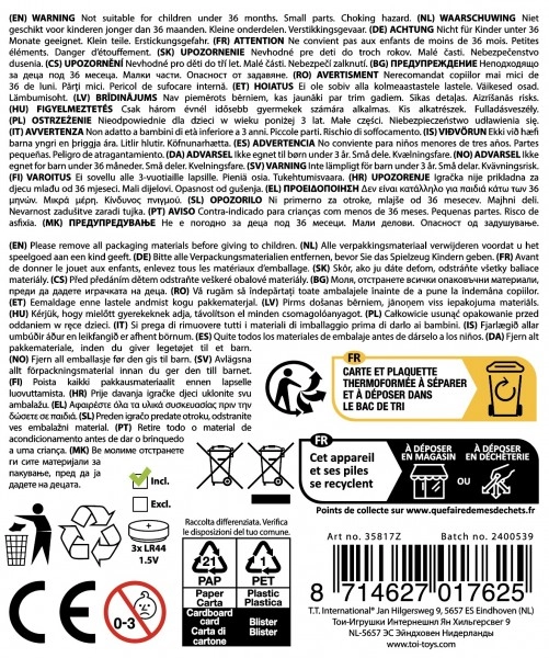 Ta pametna opazovalna in spominska igra v obliki prikupne živalice preizkusi koncentracijo in hitrost reakcij. Otroci si zapomnejo zaporedje osvetljenih gumbov in zvokov ter ga poskušajo pravilno ponoviti. Idealna za na pot ali domov – lahka, kompaktna in enostavna za uporabo.