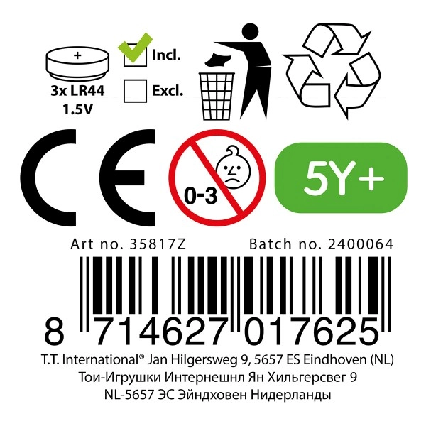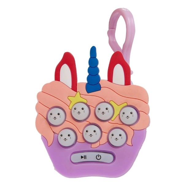 Dostopna v mešanici barvnih in živalskih motivov (npr. dinozaver, račkica, samorog, tjulenj itd.). Igra je izdelana iz trpežne plastike, ima udoben gumb za vklop/izklop in pogosto tudi zanko ali sponko za enostavno prenašanje. Odlično darilo za otroke od 3 let.