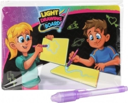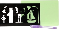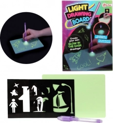 Set vključuje tablo in pisalo z nevidnim črnilom, idealno za pisanje tajnih pisem. Črnilo je pri običajni svetlobi nevidno, v temi pa začne sijati, kar zagotavlja edinstvene in presenetljive izkušnje za otroke. Del paketa so tudi predloge za še več zabave in navdiha.