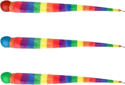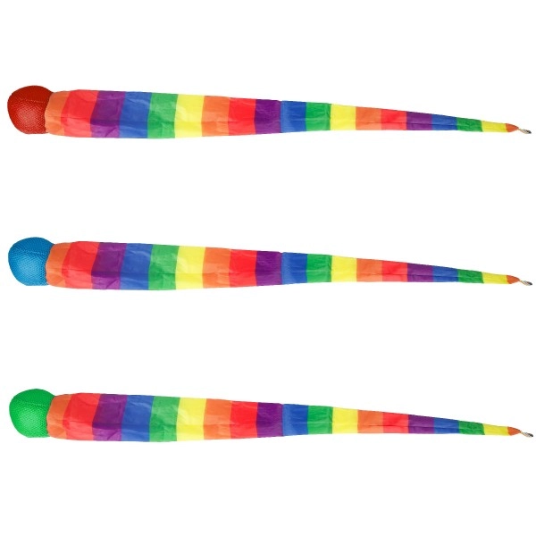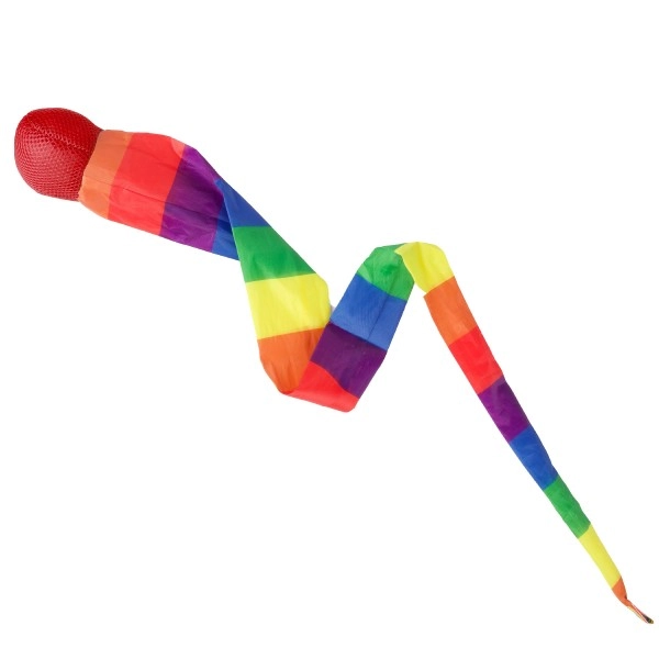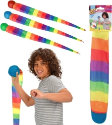 Odkrijte igračo, ki prinaša zabavo med gibanjem! Žogica z repom je dolga 100 cm, kar zagotavlja razburljive igralne izkušnje ob vsakem metu. Mavrične barve pritegnejo pozornost otrok in jih spodbujajo k aktivni igri, kar je idealno za razvoj njihovih motoričnih spretnosti in koordinacije rok in oči. Uživajte ure zabave na vrtu, v parku ali doma.