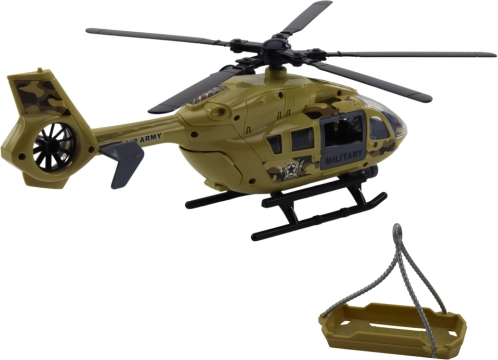 Ta vojaški helikopter je idealen za male ljubitelje letalstva in akcijskih misij. Zahvaljujoč premikajočim se rotorjem, svetlobnim in zvočnim učinkom ter transportnemu kavlju z nosili ustvarja realistične scenarije reševanja in prevoza.