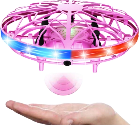 UFO minidron z upravljanjem z roko in LED osvetlitvijo – rožnat
