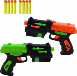 Odkrijte dvojni odmerek zabave s kompletom dveh pištol za penaste puščice s priseski. Ergonomična ročaja, kompaktne mere in preprost ročni mehanizem zagotavljajo udobno in varno uporabo. Barvit, dinamičen dizajn bo navdušil male in večje strelce ter podpiral njihove gibalne spretnosti.