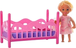 Ta očarljiv set s punčko in posteljico je izvrstna igrača za otroke, ki želijo skrbeti za svoje punčke in ustvarjati prizore nege. Set vsebuje punčko dolžine 11 cm, oblečeno v nežni roza obleki, in čudovito posteljico v roza barvi z vzmetnico in odejo.