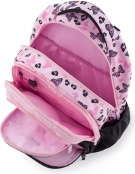 Na straneh najdete par večjih žepov. Znotraj je skrita široka paleta žepov – od velikih do manjših, tako da se vse najde hitro in enostavno. Praktično držalo za ključe ali šolski čip zagotavlja, da boste pomembne malenkosti vedno imeli pri roki.