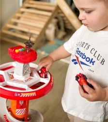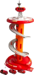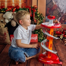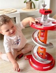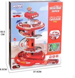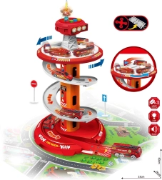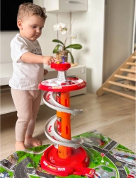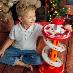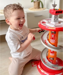 Zabavno spiralno parkirišče za male gasilce znamke WOOPIE prinaša večnivojsko stezo z hitrim spustom, svetlobnimi in zvočnimi učinki ter 3 gasilskimi avtomobilčki. Otroci od 3 let bodo uživali v dinamični vožnji po krožni rampi, igri reševanja in vožnji po priloženi cestni podlagi z oznakami.