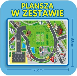 - Popoln komplet z 26 deli, vključno z avtomobilčki in prometnimi znaki.