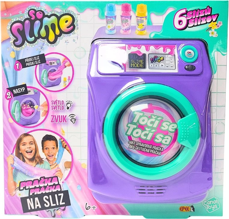 Odkrijte zabavno ustvarjanje sluzi z igračo SO SLIME dišeči pralni stroj v vijolično‑turkizni barvi. Otroci od 6 let bodo uživali v svetlobnih in zvočnih efektih, vrtečem bobnu in prozornih vratcih za opazovanje mešanja. V paketu najdete 6 vrečk s sluzjo, košarico, stekleničko in 3 dišeče perlce za čarobno dišečo, barvito sluz. Napajanje 3× AA (niso priložene).