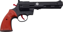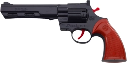 Priljubljen revolver, navdihnjen z vestern klasiko, prinaša impresiven učinek in verodostojne detajle. Z vrtljivim bobnom in možnostjo uporabe kapic ustvari avtentičen vtis strela, hkrati pa ostaja primeren tudi za igro brez pirotehnike. Črna izvedba z rdečimi poudarki poudari stilski videz.