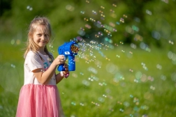 Večkratne šobe in samodejno pihanje zagotavljajo neprekinjen tok lepih in dolgo obstojnih mehurčkov za maksimalno zabavo na prostem in doma.