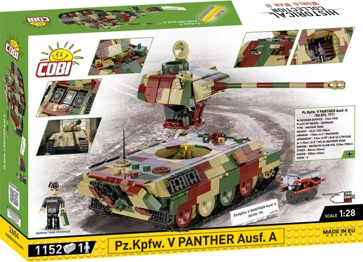Komplet je zasnovan iz kakovostnih kock COBI, ki se trdno držijo skupaj, so združljive z drugimi znamkami in izdelane v EU. V paketu najdete pregleden ilustriran priročnik, ki vas korak za korakom vodi skozi gradnjo. Model je del serije Historical Collection in je nastal v sodelovanju z Muzejem oklepne tehnike v Kłaninu, kar zagotavlja visoko stopnjo zgodovinske verodostojnosti.