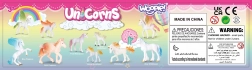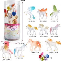 Ta očarljiv set figuric samorogov znamke WOOPIE prinaša otrokom ure zabave in domišljije. Figurice v različnih pozah, z pisano obarvanimi grivami, repi in krili, vabijo k ustvarjanju lastnih zgodb, medtem ko “dragi kamni” igri dodajo iskrico. Zaradi kakovostne izdelave so idealne tako za samostojno igro kot tudi kot dodatek v otroški sobi.