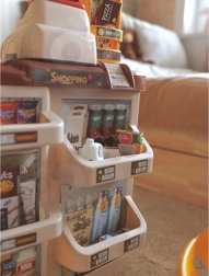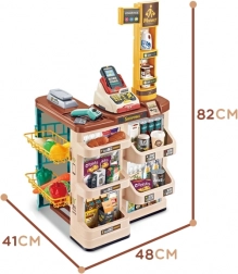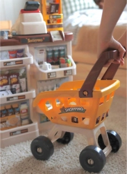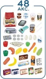 V paketu sta tudi nakupovalni voziček/košara za igro v dvoje, papirnat denar, plačilna kartica in različna živila (sadje, zelenjava, napitki, mlečni izdelki itd.). Estetski dizajn se poda v vsak interier, barvito darilno pakiranje pa razveseli ob vsaki priložnosti.
