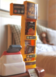 Mehanska tehtnica zvesto posnema pravo, policna razporeditev z oznakami cen pa pomaga otrokom pri razvrščanju, zlaganju in učenju vrednosti.