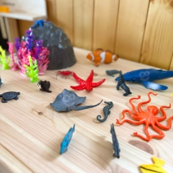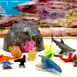 Komplet figur znamke Woopie je popolno darilo za vsakega ljubitelja morskih živali. Ta komplet vsebuje 21 morskih živali, 10 rastlin, podlogo in skalo.